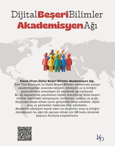 Bu doğrultuda; alanda çalışan akademisyenler arasında sürdürülebilir bir iletişim ortamı oluşturmak, bilgi paylaşımını kolaylaştırmak, ortak projeleri teşvik etmek ve Dijital Beşerî Bilimler alanında ortak bir etkileşim ve paylaşım platformu sunmak amacıyla Klasik Divan Dijital Beşerî Bilimler Akademisyen Ağı kurulmuştur.
