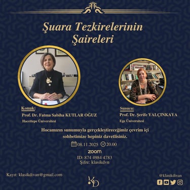 Ekranda yer alan görseller, 2021'de başlayıp hâlâ devam ettiğimiz tüm sohbetlerimizin afişleridir. Bu zamana kadar gerçekleştirdiğimiz sohbetlerimizin video kayıtları, "Klasik Divan Youtube Kanalı"mızda mevcuttur. Sayfanın sol alt köşesinde bulunan sosyal medya sembollerinden kanalımıza ulaşabilir, sohbetlerimizi dinleyebilirsiniz. Programlarımız, önce konu anlatımı ardından soru cevap şeklinde düzenlenmiştir.